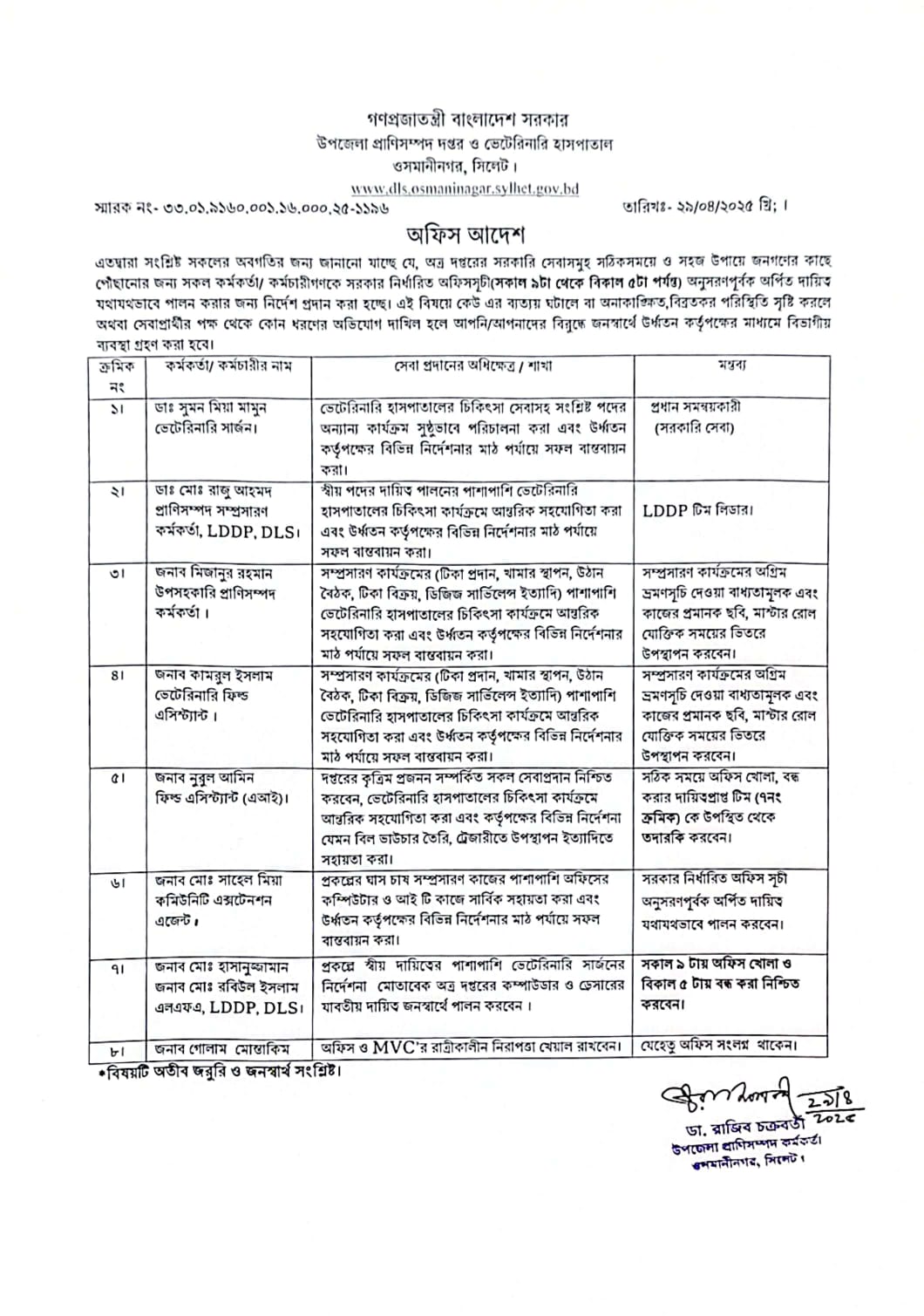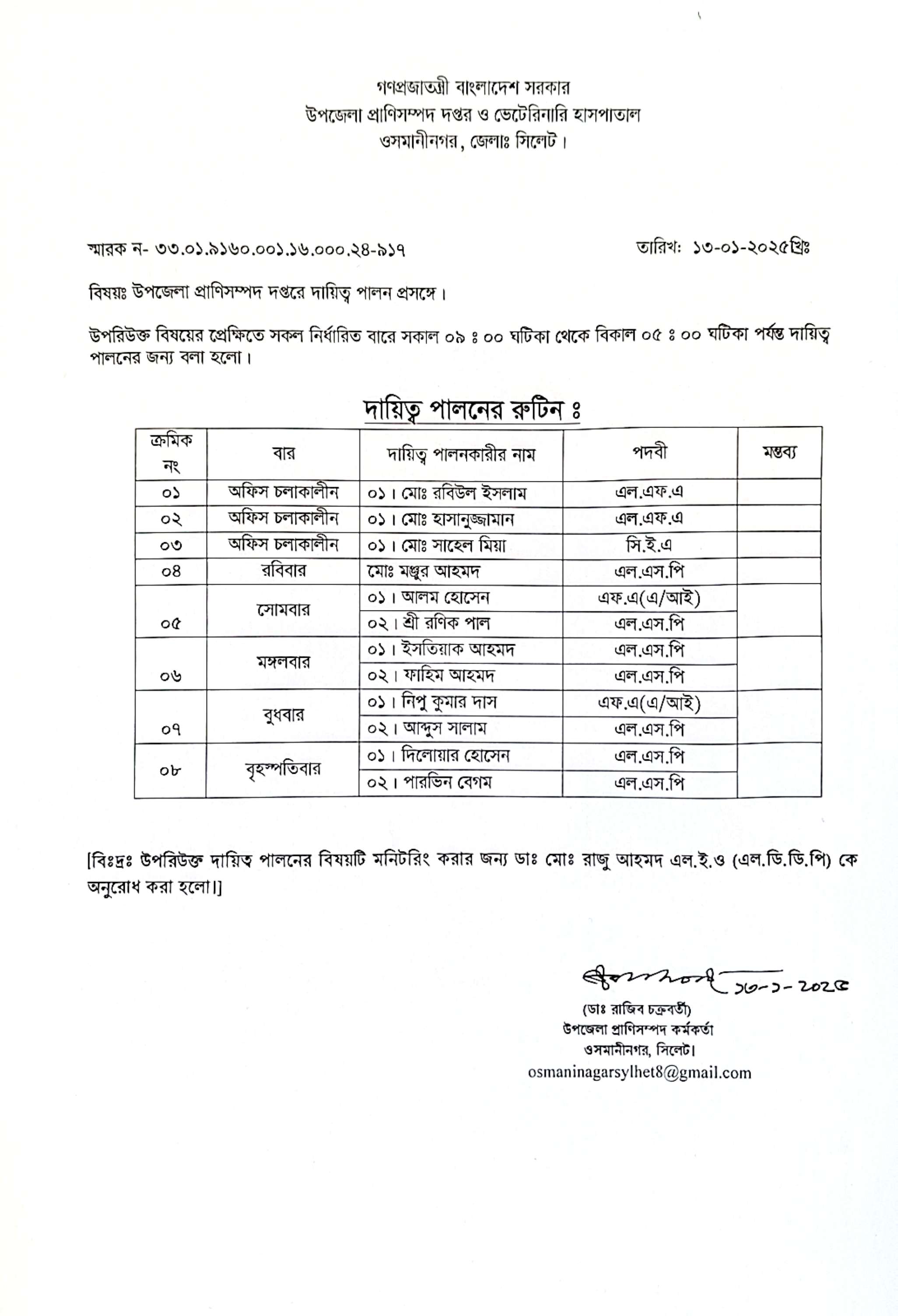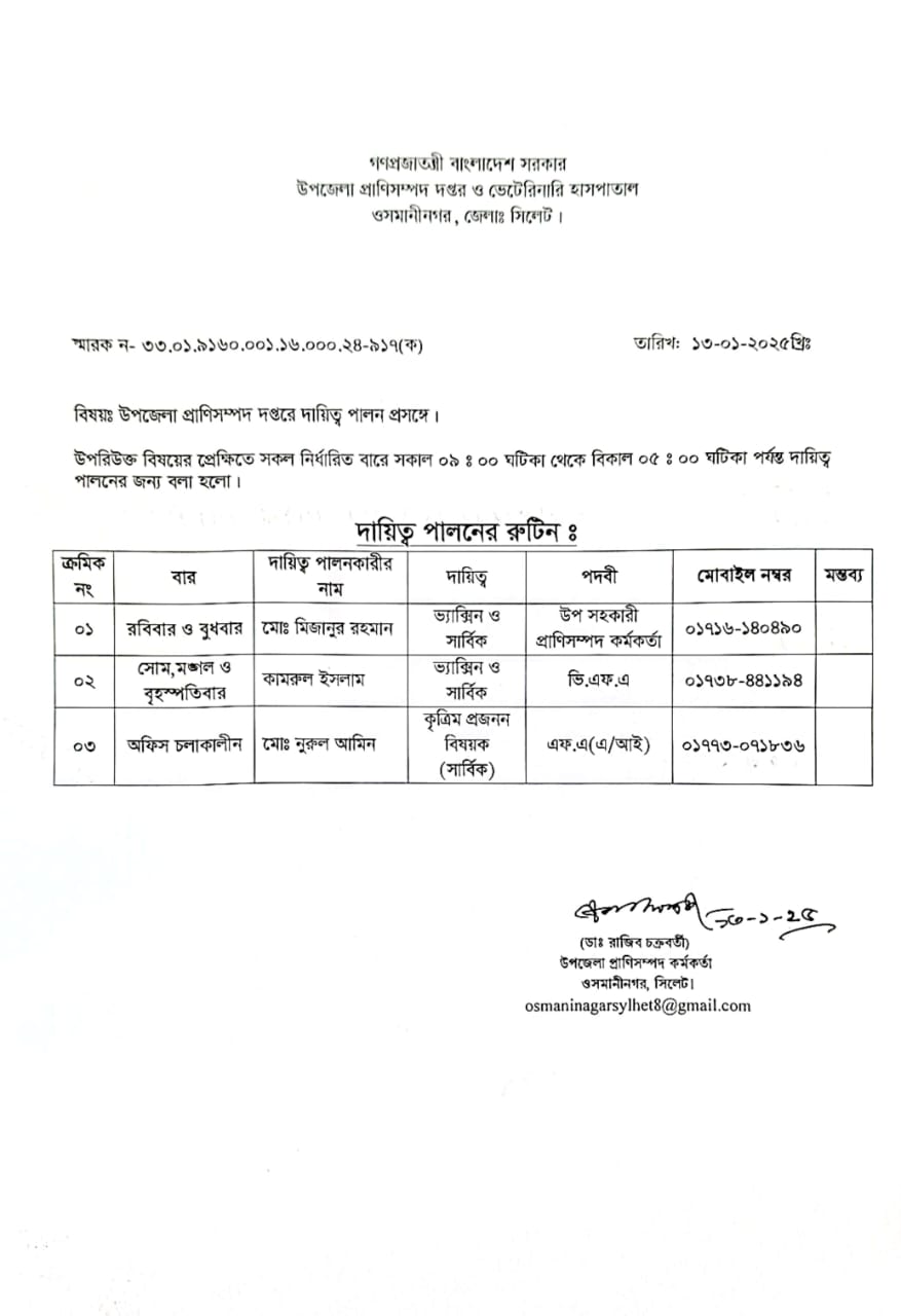 বিভিন্ন রুটিন দায়িত্ব বন্টন